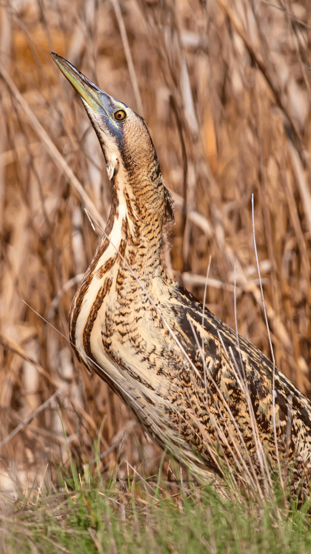Der tiefe, weit tragende Balzruf der Rohrdommel (Botaurus stellaris) – ein dumpfes, kehlig vibrierendes „Umpfen“ – ist vor allem in der Paarungszeit in Feuchtgebieten zu hören und kann über weite Distanzen getragen werden. Aufgrund seiner charakteristischen Klangfarbe wird dieser Laut mitunter mit dem Ruf des Ochsenfrosches (Lithobates catesbeianus) verwechselt. Auch der Ochsenfrosch äußert während der warmen Monate in Gewässernähe kraftvolle Rufe, die tief, langgezogen und an ein dumpfes „jug-o-rum“ oder „brumm“ erinnern. Diese Ähnlichkeit in Tonhöhe und Klangcharakter kann gelegentlich zu akustischen Verwechslungen zwischen beiden Arten führen.